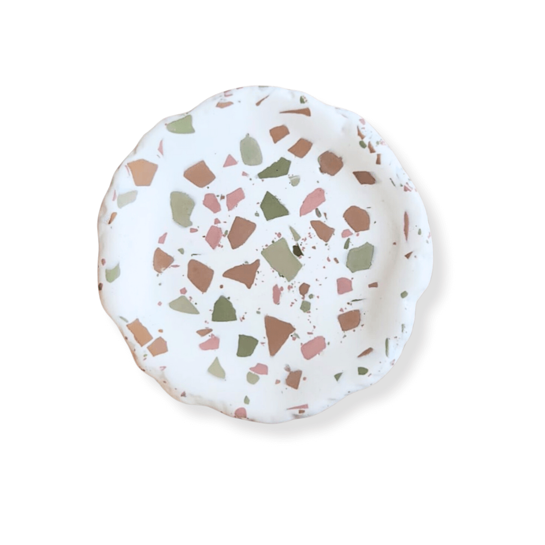 Scalloped Edge Terrazzo Trinket Tray – Handcrafted Decor